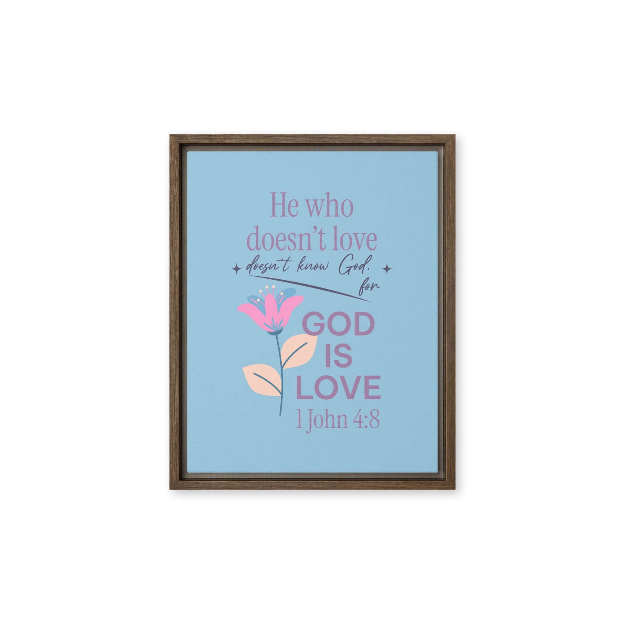 1 John 4:8 Bible Verse, doesn’t love Framed Canvas Print Wall Art
