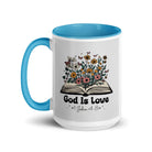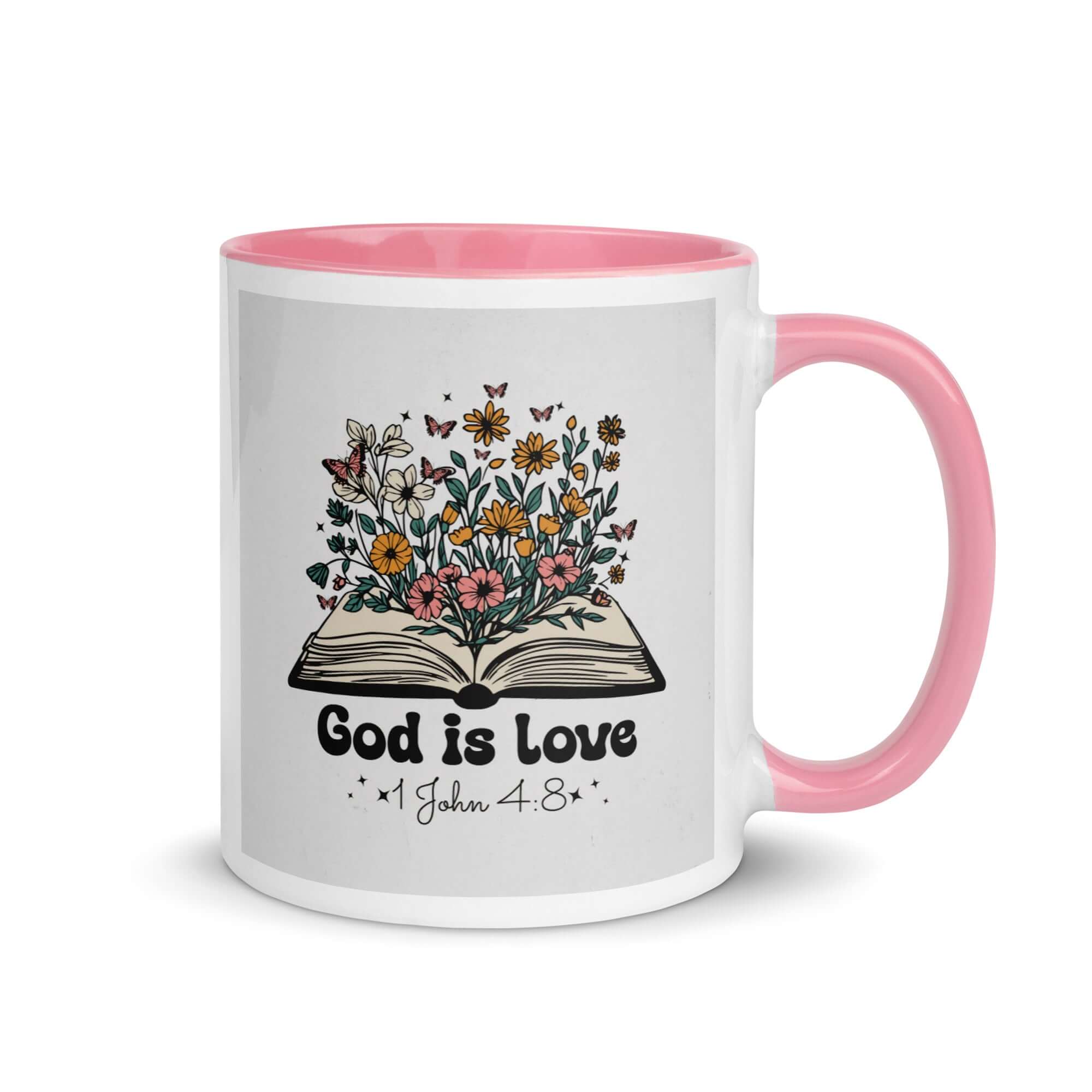 1 John 4:8 Bible Verse, God is Love White Ceramic Mug with Color Inside