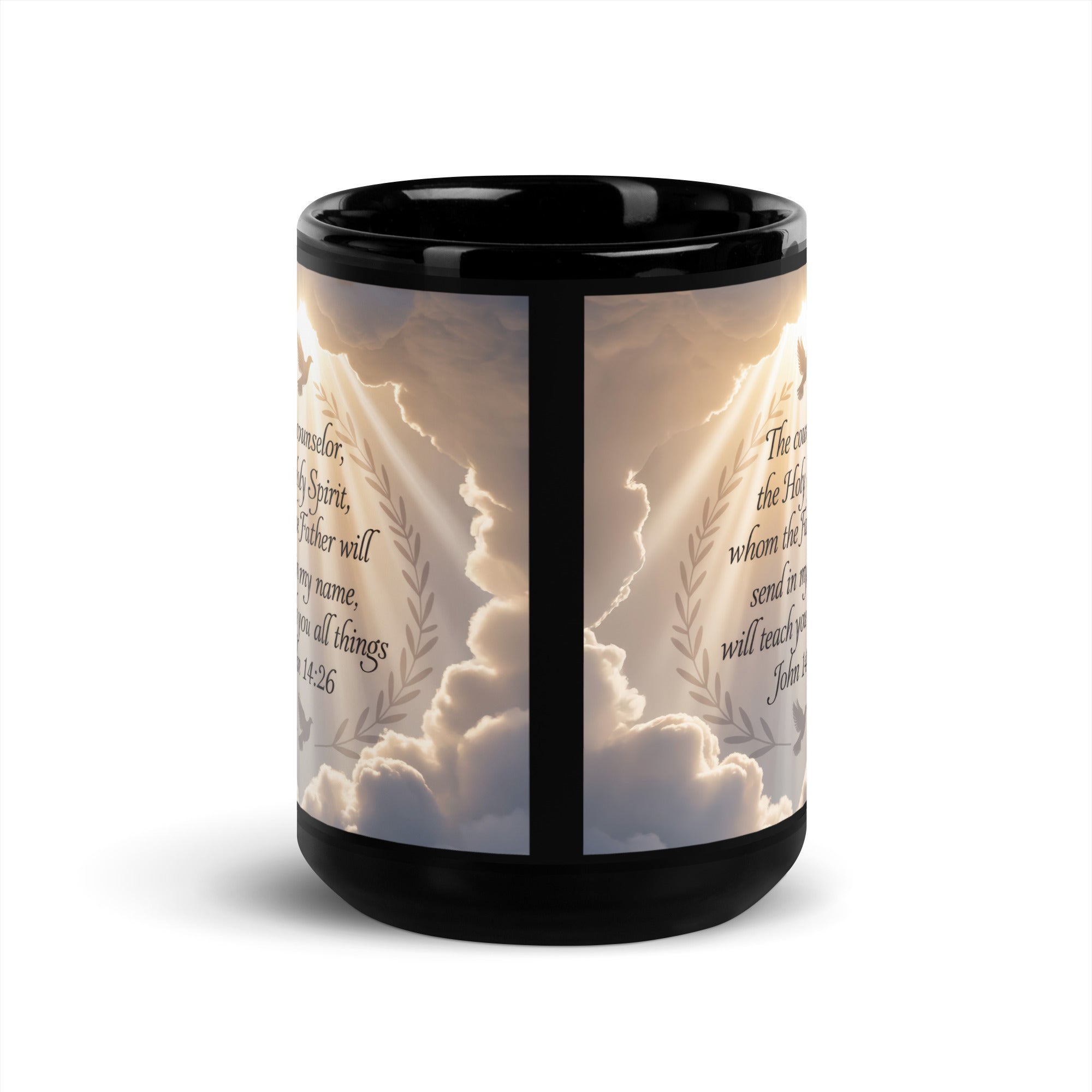 Embrace Comfort and Inspiration with the John 14:26 Bible Verse Black Glossy Mug