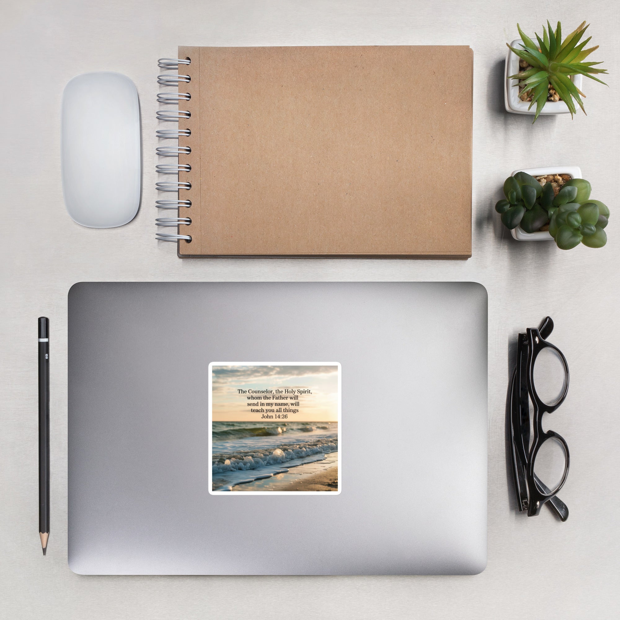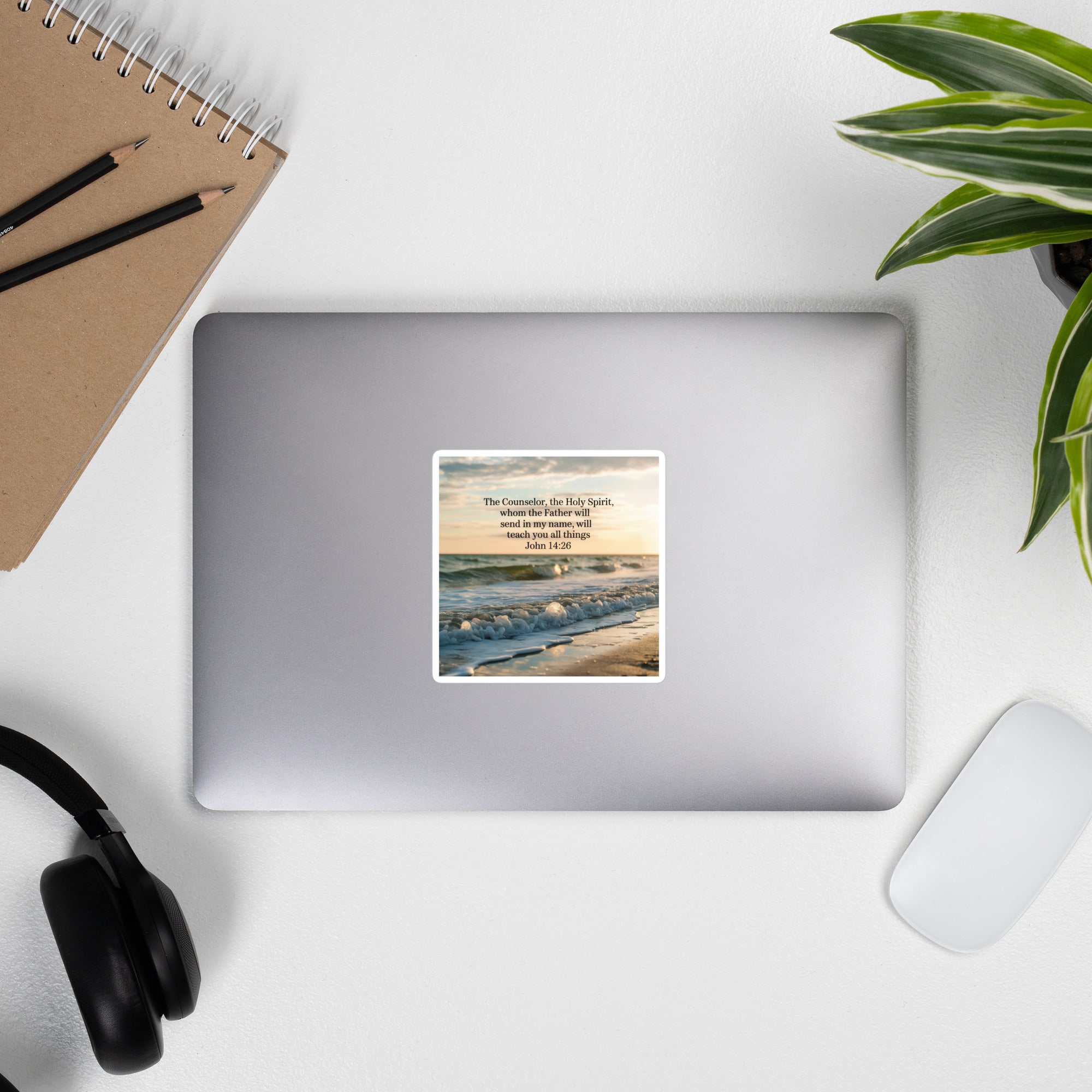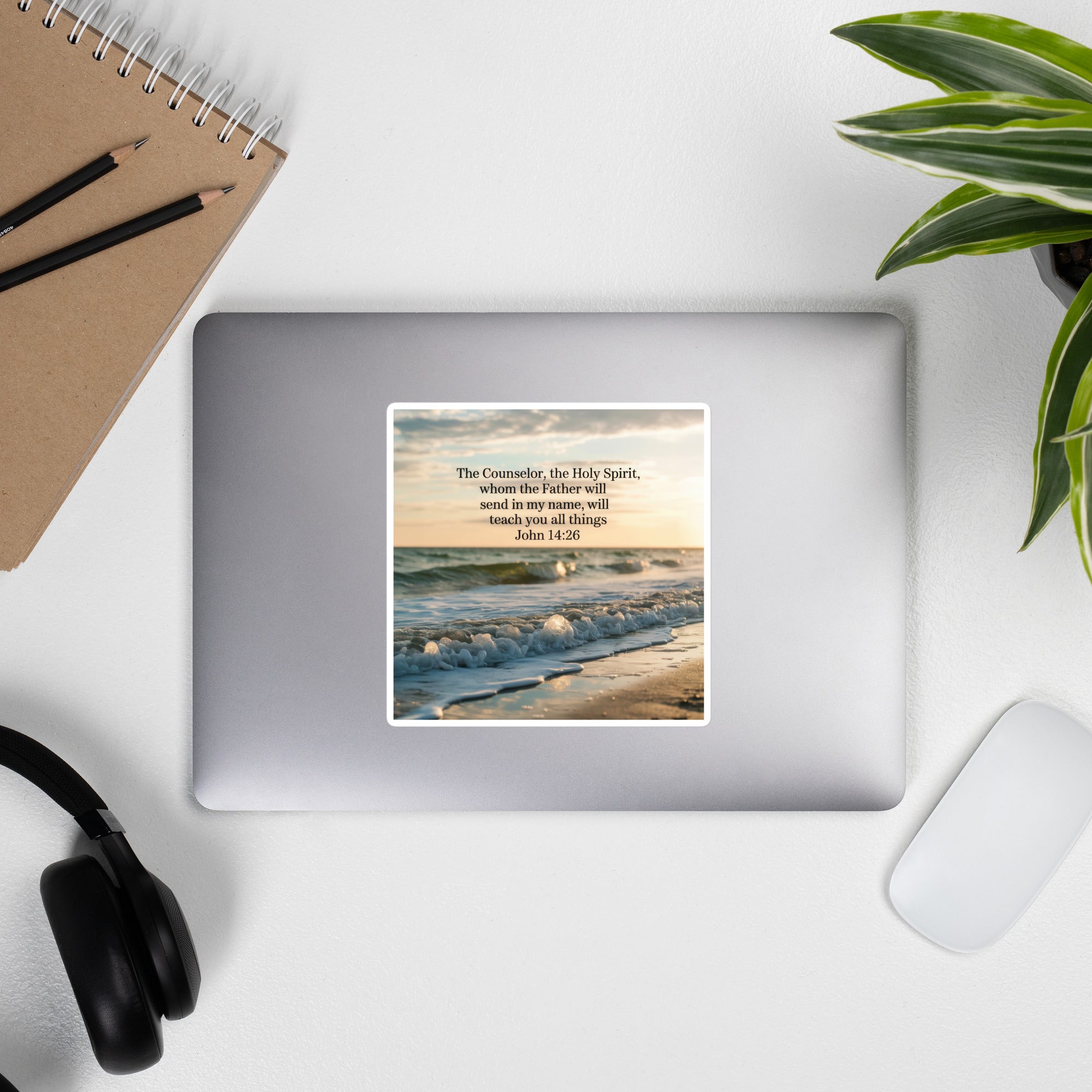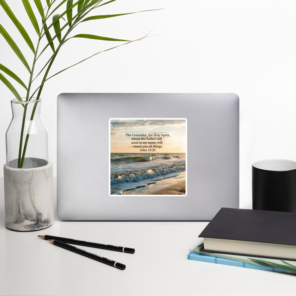 Inspirational John 14:26 Bible Verse Kiss Cut Sticker – A Reminder of Faith and Guidance