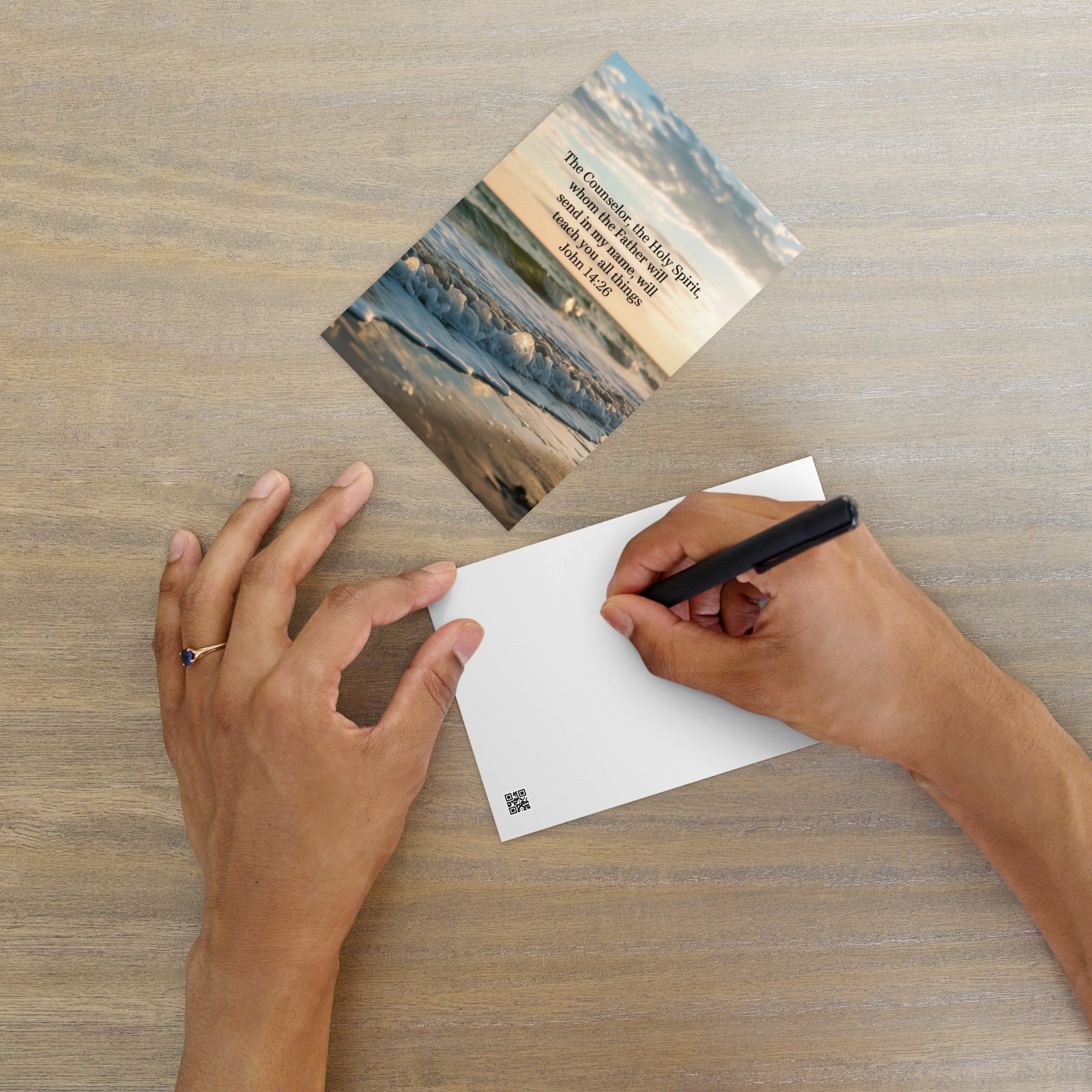 - Inspirational Design: Featuring the revered Bible verse from John 14:26, this postcard delivers a message of divine guidance and assurance.