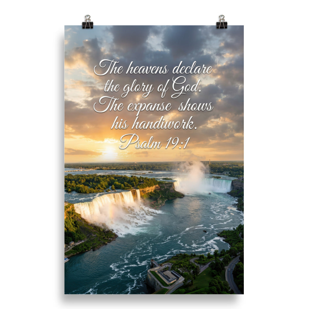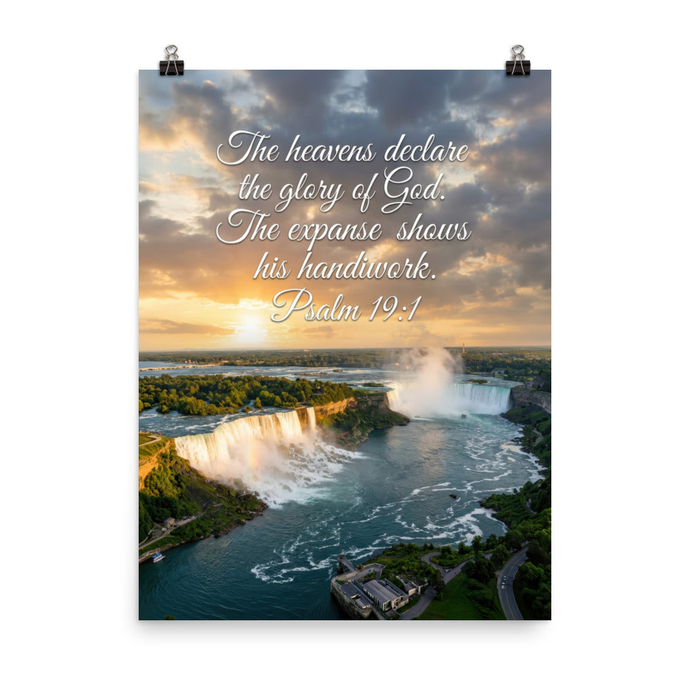 Bring the awe-inspiring power of Niagara Falls and the timeless truth of Psalm 19:1 into your daily life. This enhanced matte paper poster serves as a beautiful reminder that all creation points to the glory of God.