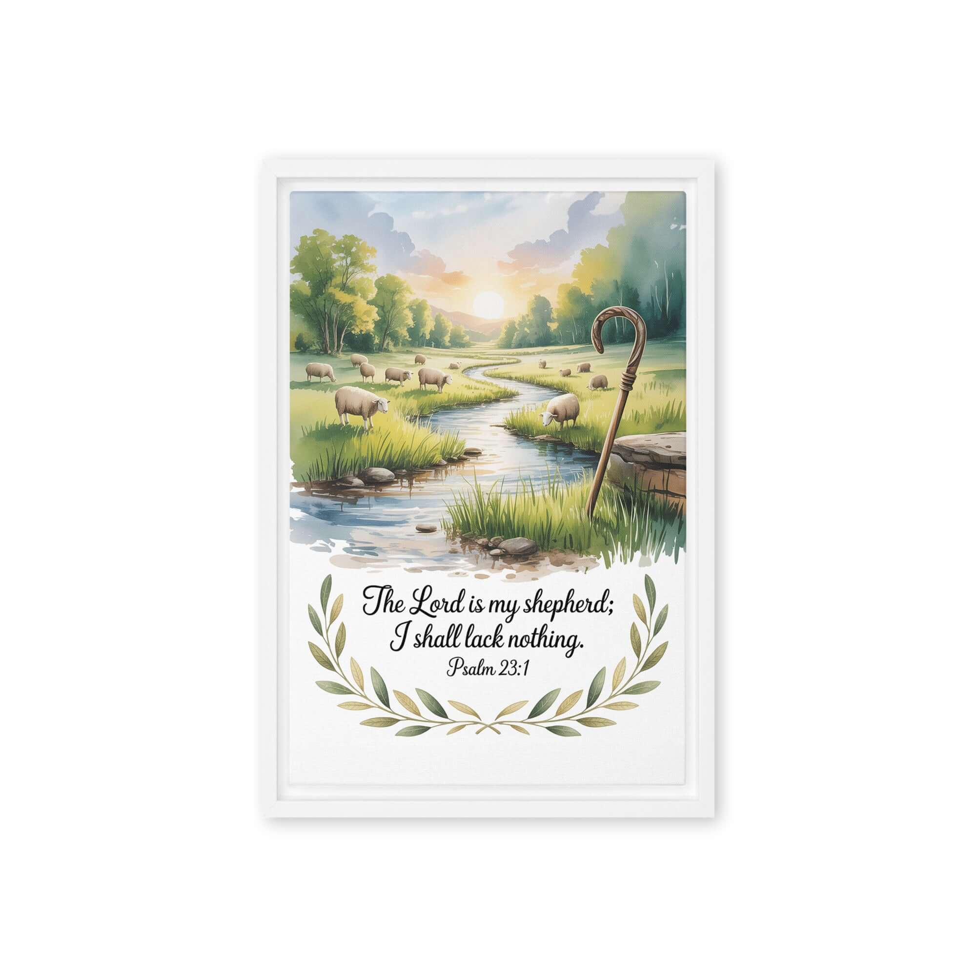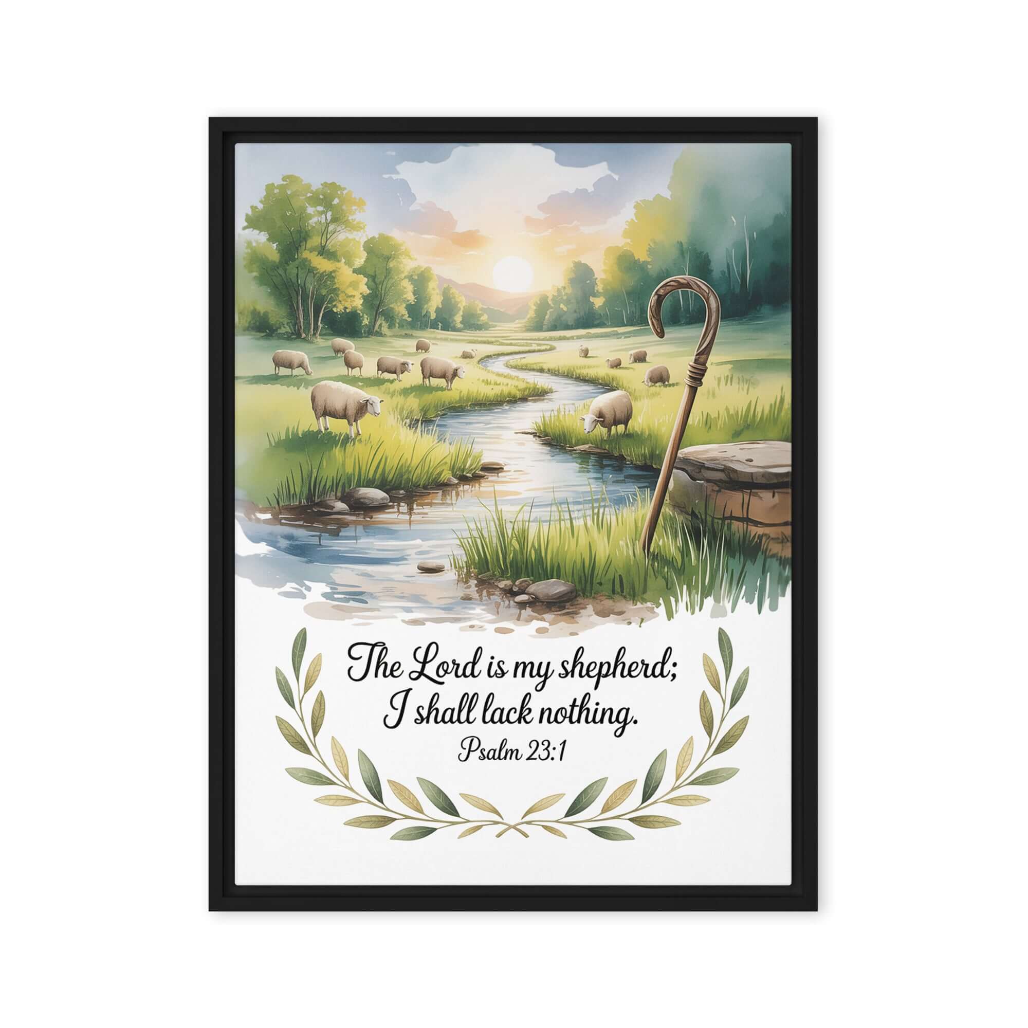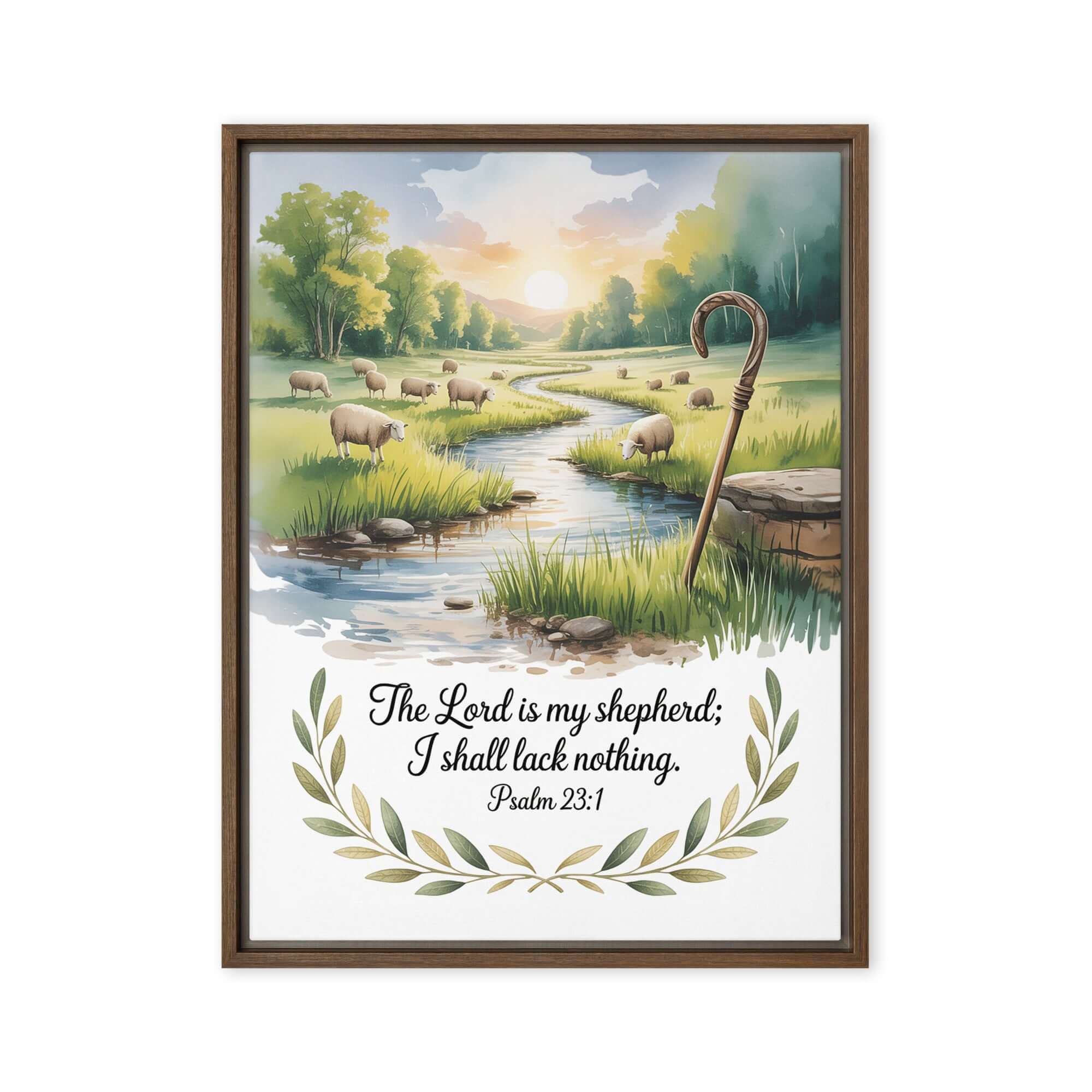 Elevate Your Space with the Psalm 23:1 Bible Verse Framed Canvas