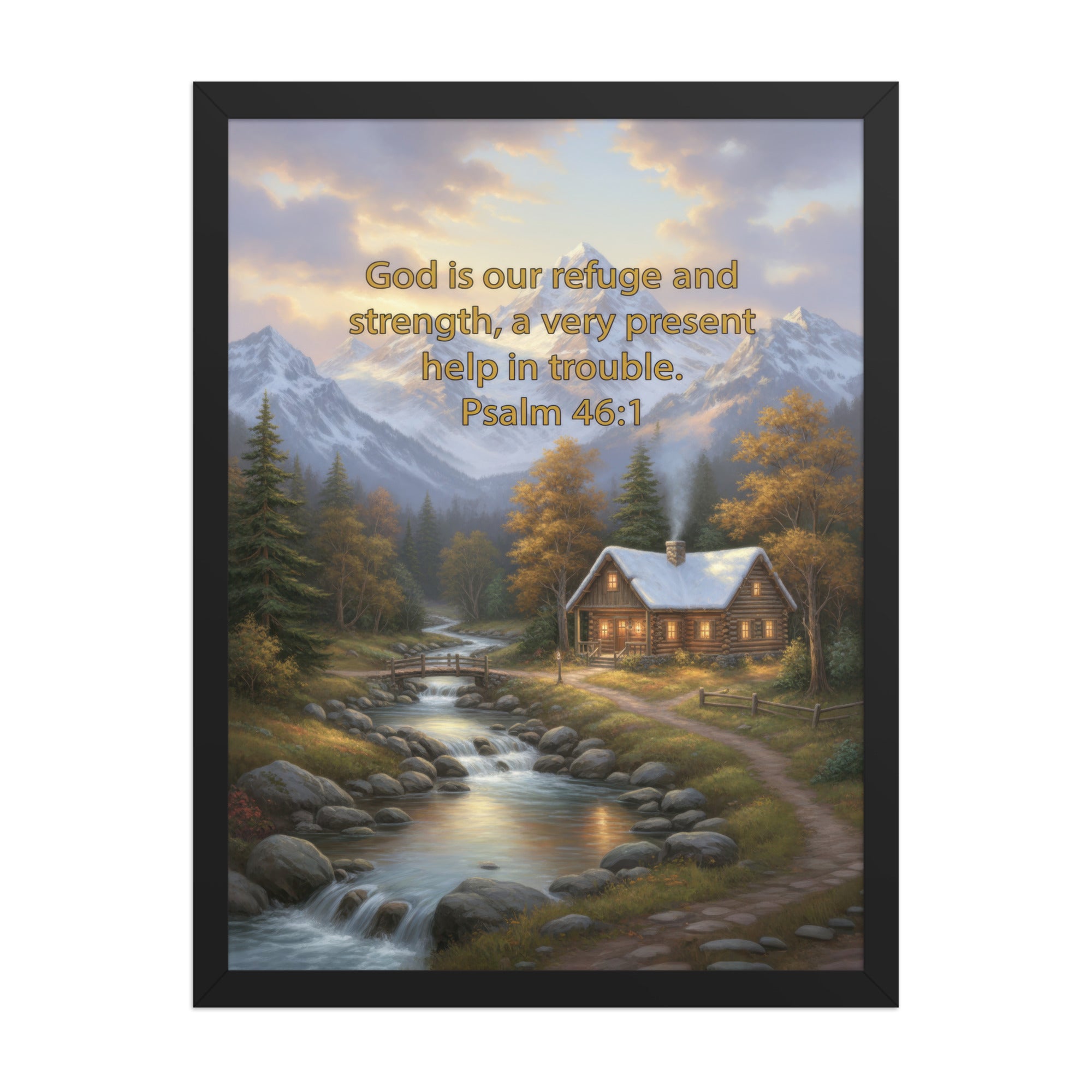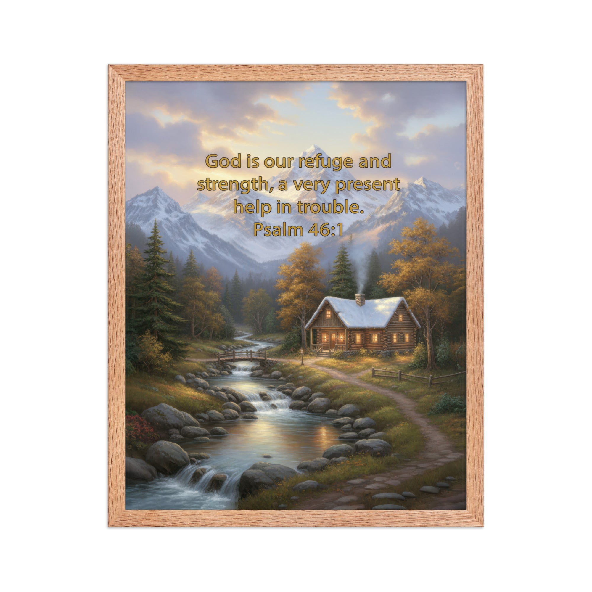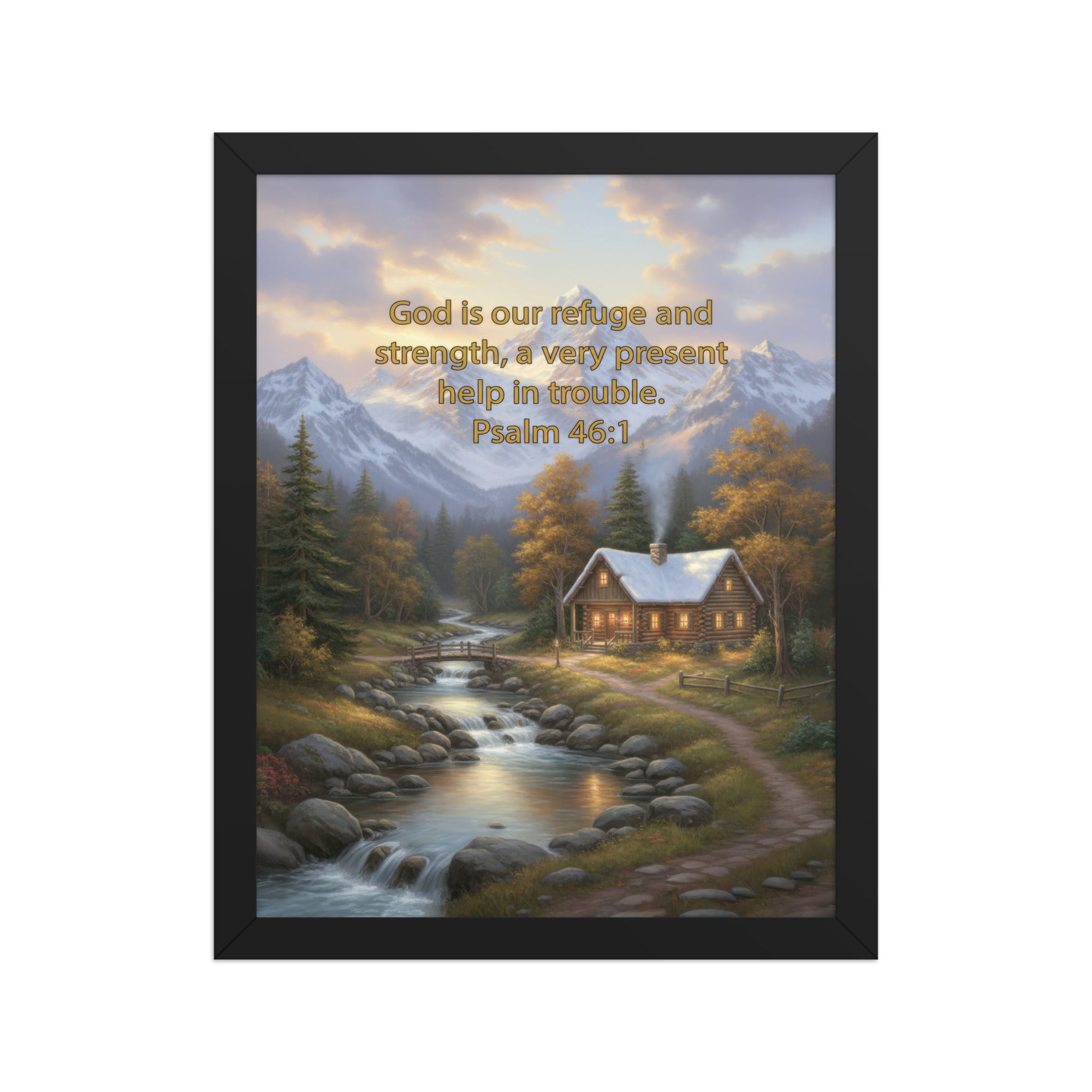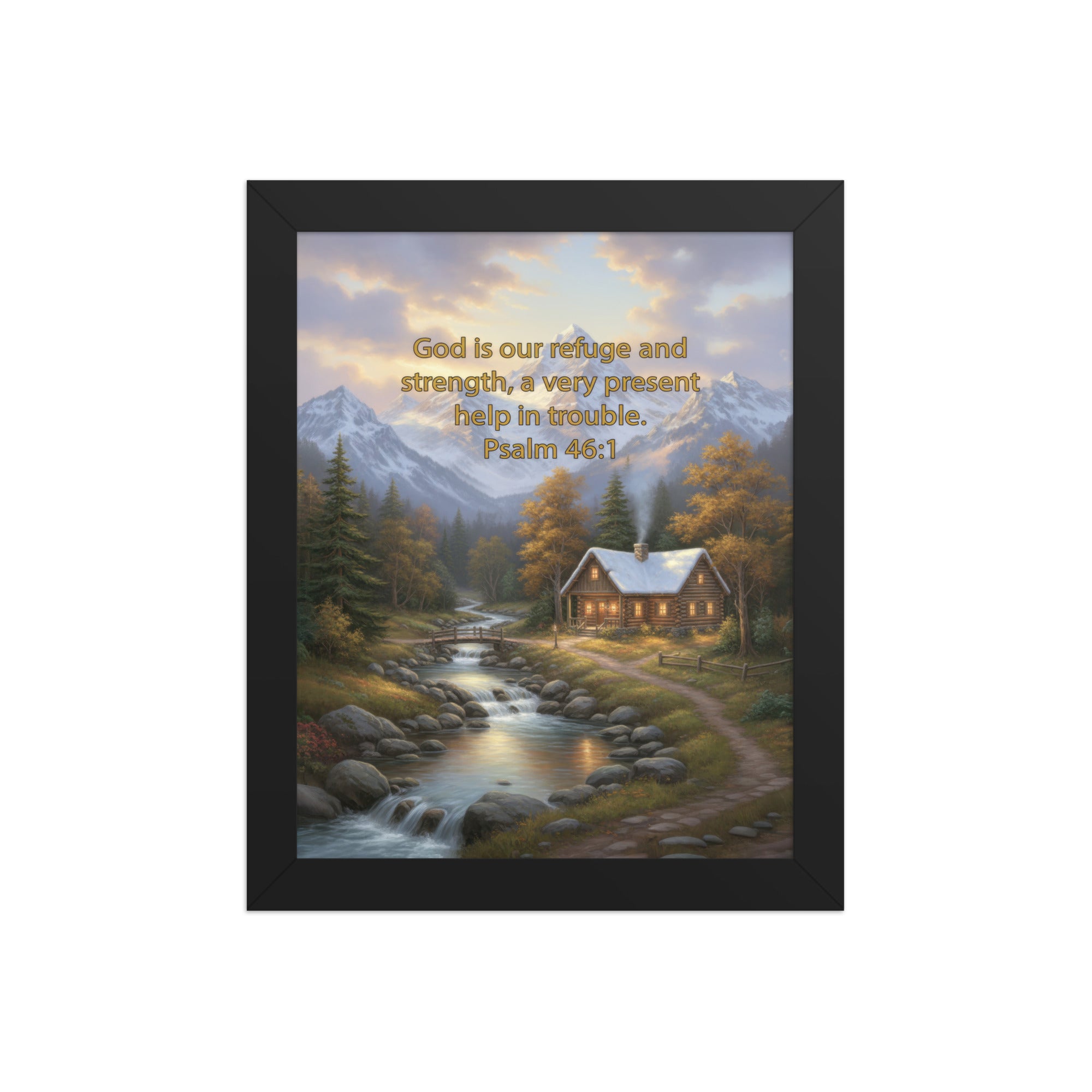 Psalm 46:1 "God is Our Strength" - Premium Framed Poster on Luster Photo Paper