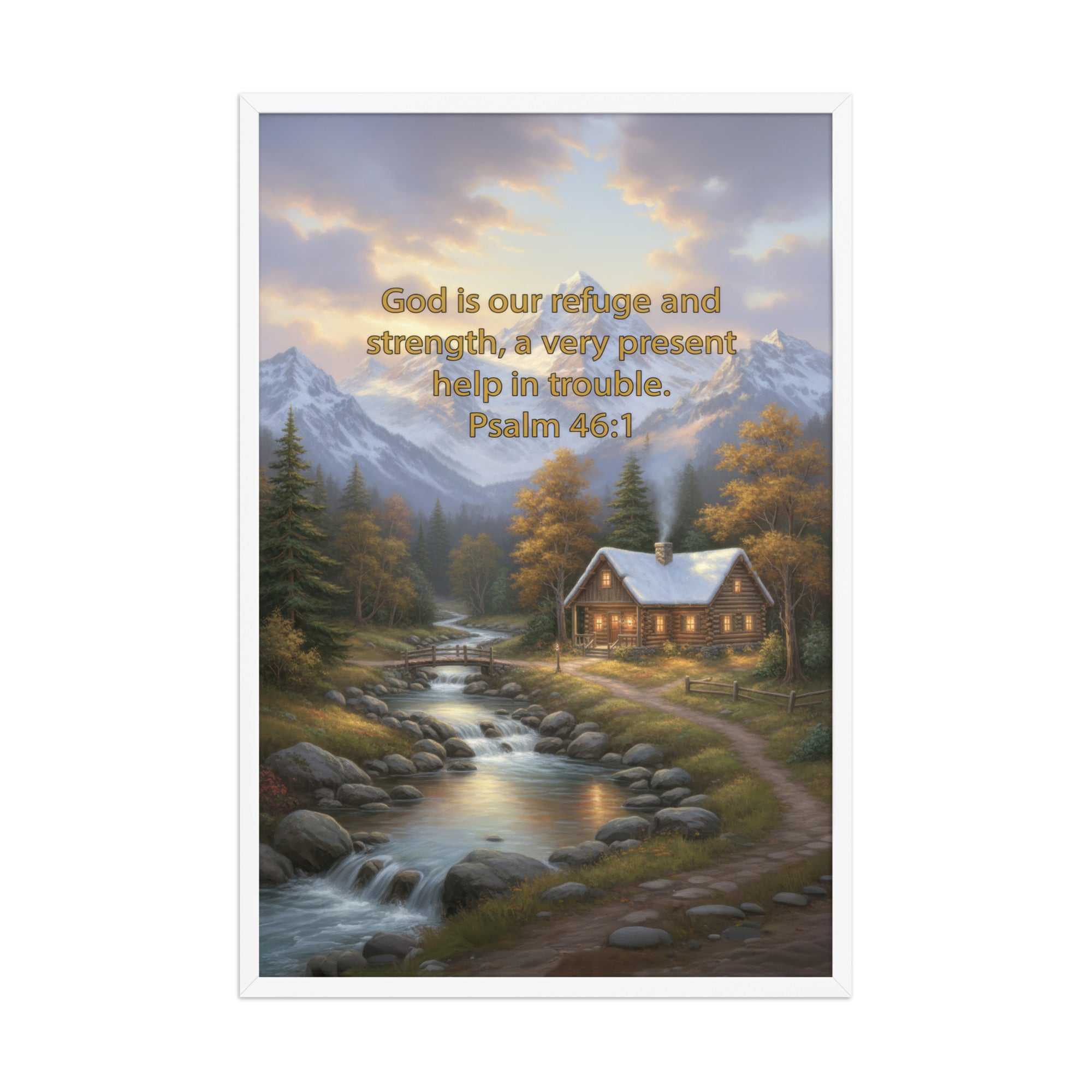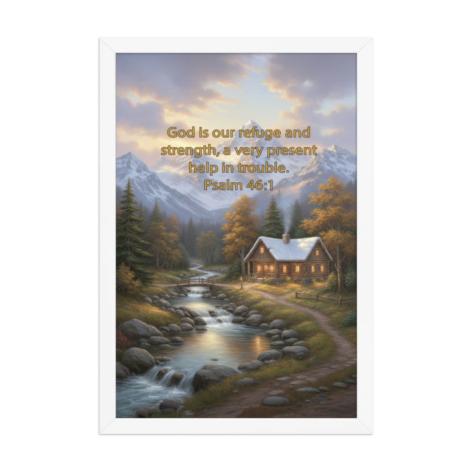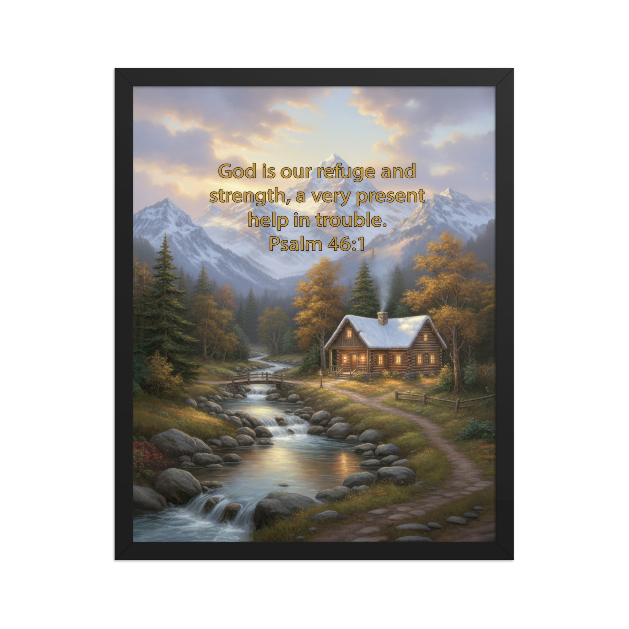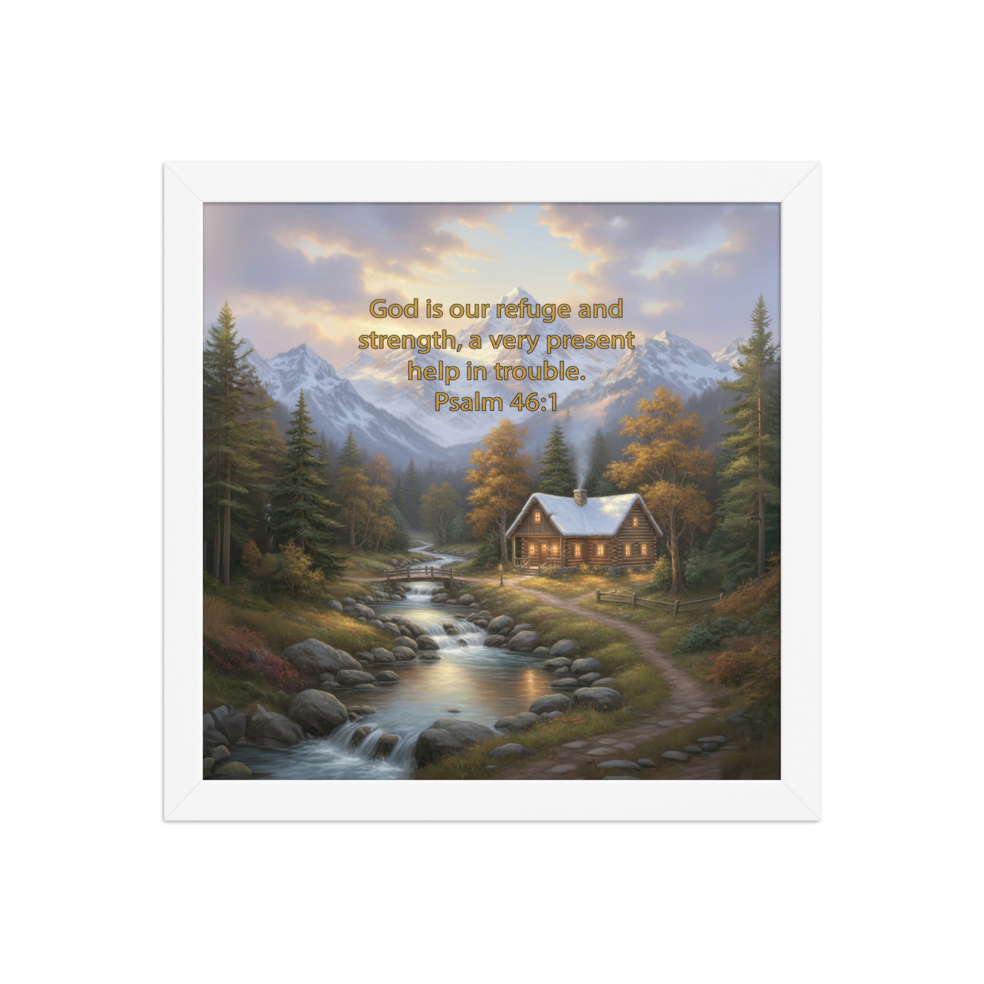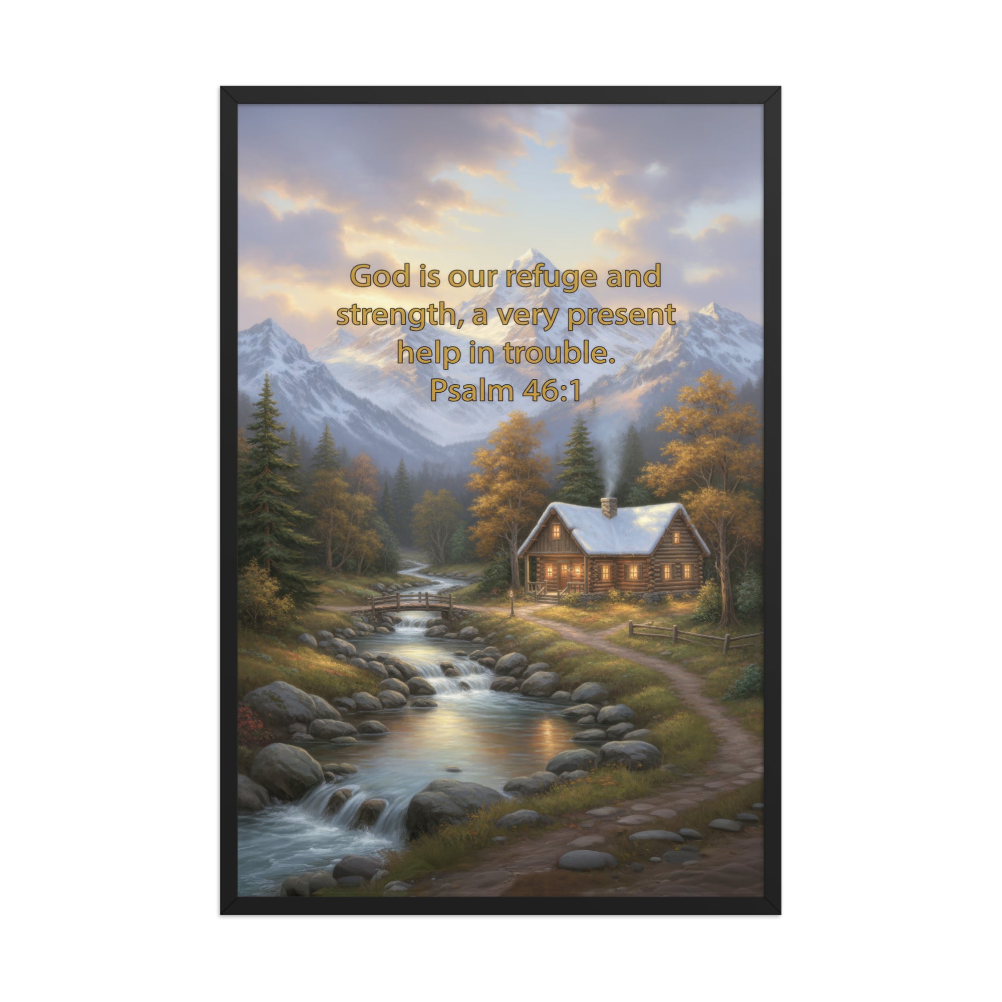 Psalm 46:1 "God is Our Strength" - Premium Framed Poster on Luster Photo Paper